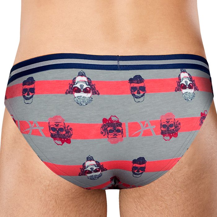 Мужские трусы-слипы от doreanse в широкую серо-розовую полоску с принтом из весёлых черепочков. Мягкий эластичный дышащий материал из смеси натуральных волокон (хлопок + модал) с добавлением эластана. На поясе мягкая пришивная резинка с фирменным логотипом «doreanse». Передняя панель однослойная, без подкладки.